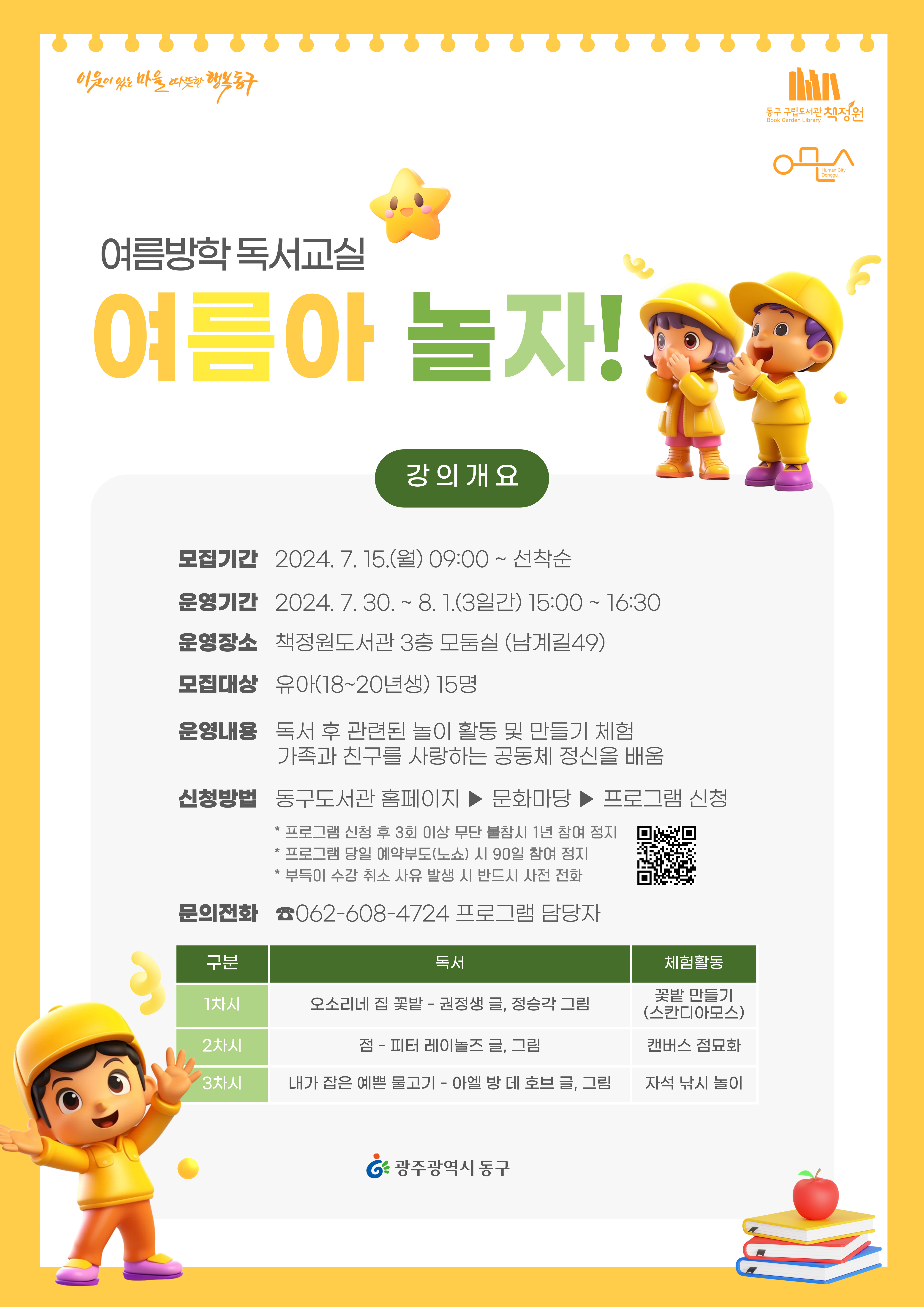 home 맘편한 내★일, 광주아이키움2.0 결혼·임신·출생 영유아 초·중·고 다양한 가족 일생활균형 커뮤니티 아동돌봄지원 소통방 나눔방 광주 아이키움 상담방 돌봄정보방 성폭력 피해 상담 및 사건지원 공지사항 우리동네 돌봄정보 기관별 공지사항 [책정원도서관]여름아! 놀자 (독서교실) 등록일 : 2024-07-26 17:45 카테고리 : 카테고리 없음 작성자 : 운영자 조회수 : 205 [출처: 광주광역시 동구] 목록