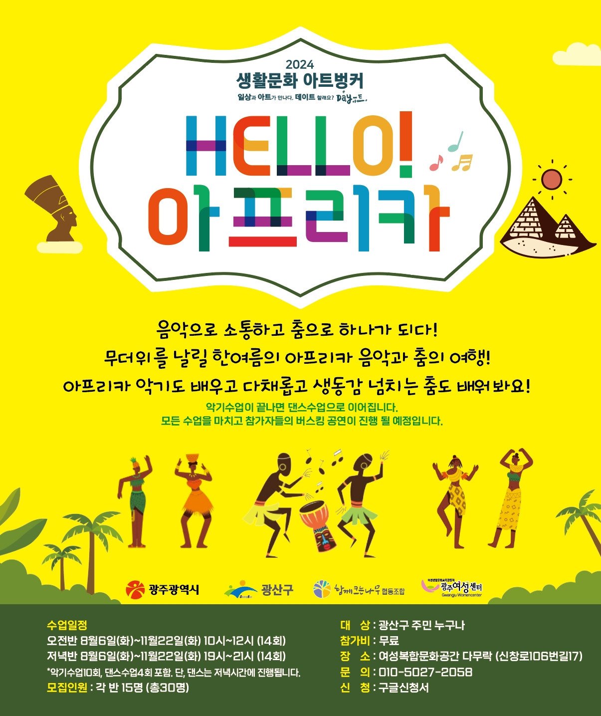 home 맘편한 내★일, 광주아이키움2.0 결혼·임신·출생 영유아 초·중·고 다양한 가족 일생활균형 커뮤니티 아동돌봄지원 소통방 나눔방 광주 아이키움 상담방 돌봄정보방 성폭력 피해 상담 및 사건지원 공지사항 우리동네 돌봄정보 기관별 공지사항 [광산구] HELLO! 아프리카 등록일 : 2024-07-31 09:56 카테고리 : 카테고리 없음 작성자 : 운영자 조회수 : 192 ○문의 : 010-5027-2058[출처 : 광주광역시 광산구] 목록