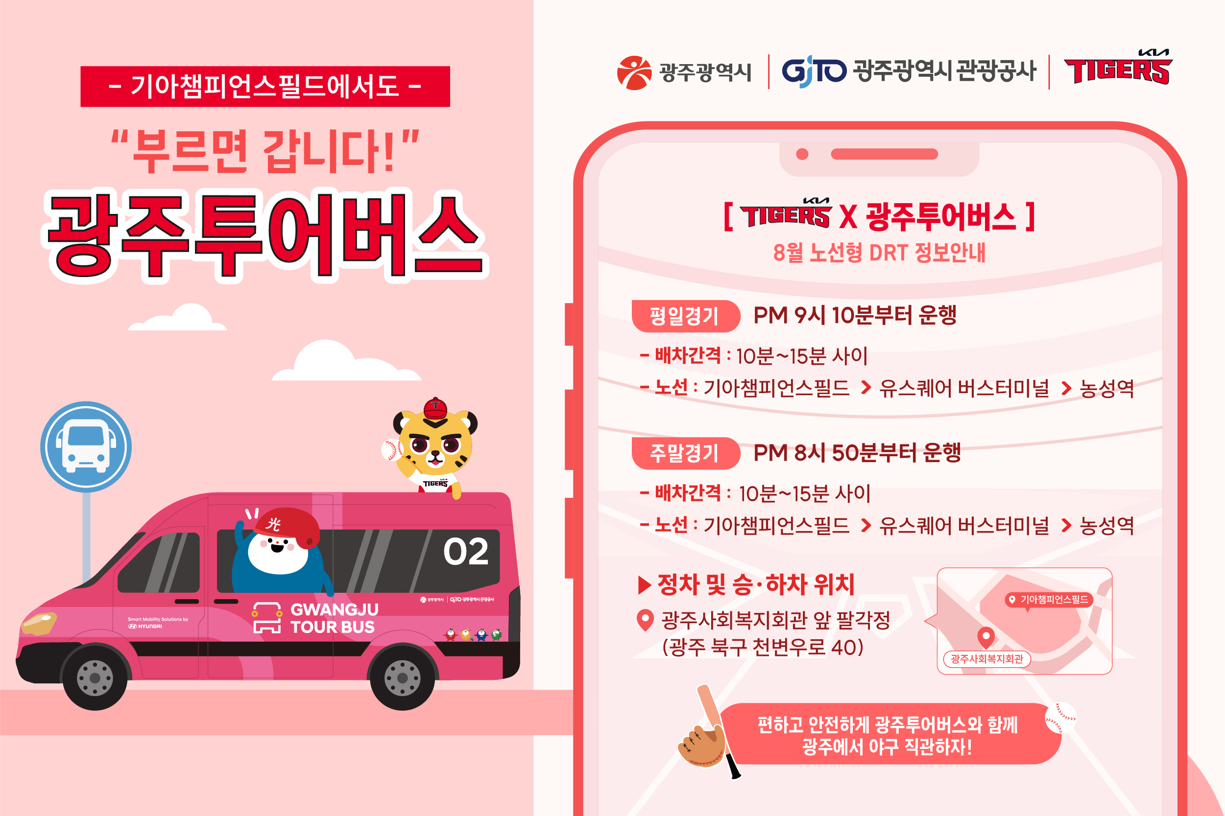 광주시가 ‘부르면 찾아가는’ 수요응답형(DRT) ‘광주투어버스’의 운행 정류장에 기아챔피언스필드를 추가합니다.