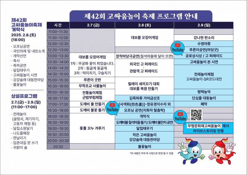 home 맘편한 내★일, 광주아이키움2.0 결혼·임신·출생 영유아 초·중·고 다양한 가족 일생활균형 커뮤니티 아동돌봄지원 소통방 나눔방 광주 아이키움 상담방 돌봄정보방 성폭력 피해 상담 및 사건지원 공지사항 우리동네 돌봄정보 기관별 공지사항 [축제] 2025 고싸움놀이축제를 개최합니다! 등록일 : 2025-02-07 08:18 카테고리 : 카테고리 없음 작성자 : 운영자 조회수 : 305 고싸움놀이축제를 진행합니다.○ 일정 : 25. 02. 07 ~ 25. 02. 09○ 장소 : 고싸움놀이전수교육관○ 요금 : 무료○ 정보 : 고싸움놀이 누리집 및 인스타그램○ 문의 : 062-374-3839 (사)고싸움놀이보존회 목록