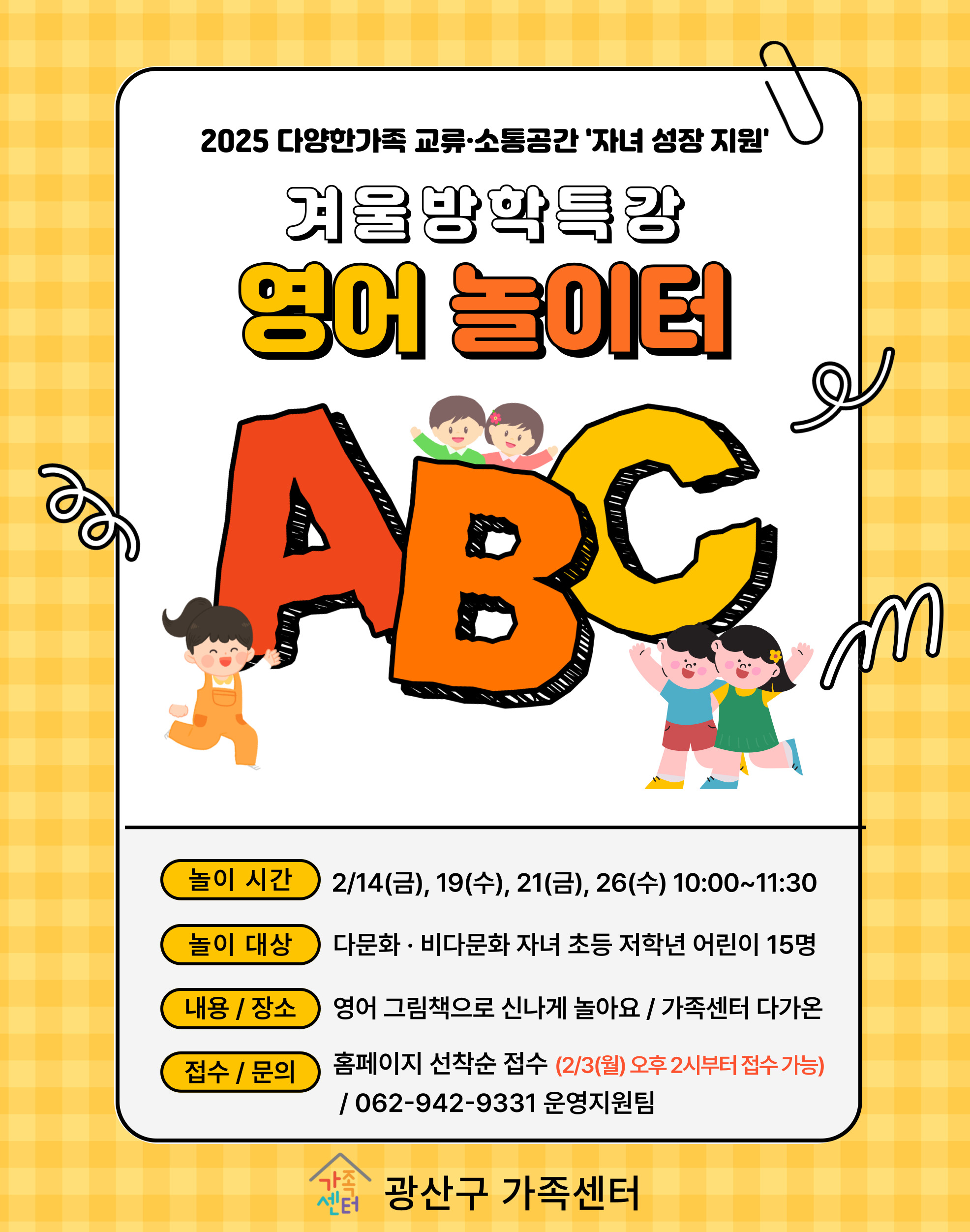[광산구가족센터] 겨울방학특강 '영어 놀이터'