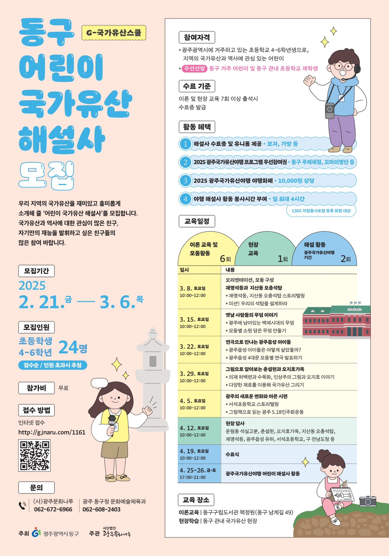 - 광주광역시에 거주하는 “초등학생 4~6학년”으로, 지역 국가유산과 역사에 관심 있는 어린이