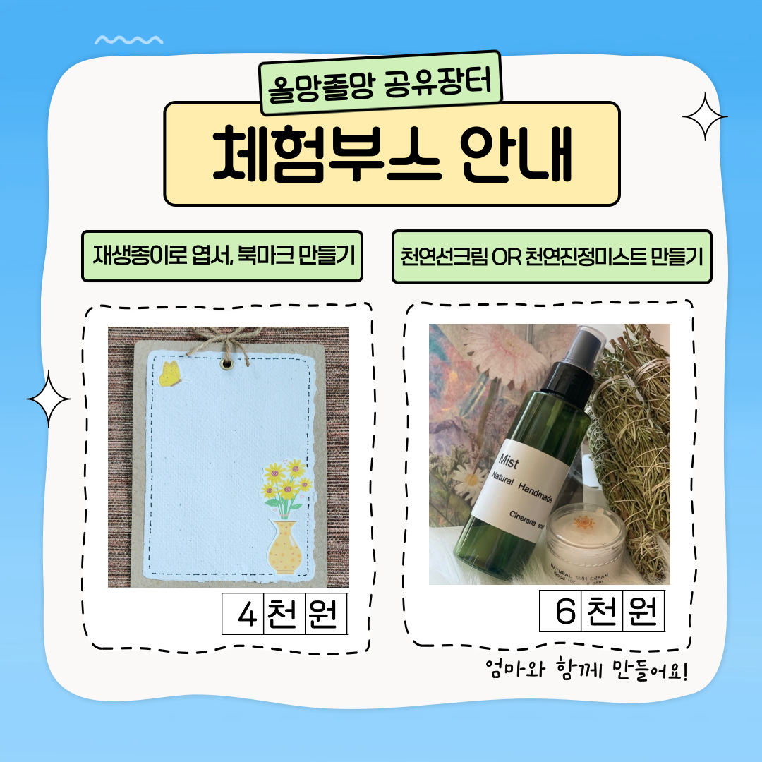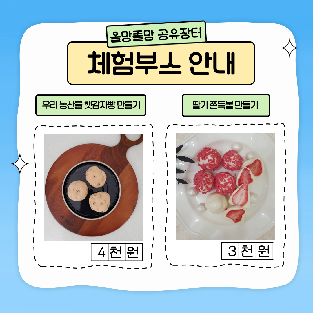 home 맘편한 내★일, 광주아이키움2.0 결혼·임신·출생 영유아 초·중·고 다양한 가족 일생활균형 커뮤니티 아동돌봄지원 소통방 나눔방 광주 아이키움 상담방 돌봄정보방 성폭력 피해 상담 및 사건지원 공지사항 우리동네 돌봄정보 기관별 공지사항 [공유센터] 실내에서 즐기는 올망졸망 공유장터 😊 등록일 : 2025-06-13 11:32 카테고리 : 카테고리 없음 작성자 : 운영자 조회수 : 95 첨부파일 공유장터.png 다운로드 📍 일시 : 25.06.21.(토) 14시 ~17시 📍 장소 : 광주 남구 화산로 30 광주공유센터 실내 및 복도 📍 체험부스 소개 - 우리 농산물 햇감자빵 만들기 - 딸기 쫀득볼 만들기 - 해피드림 커피박 화분 만들기 - 레진 이름표 키링 만들기 .. 등등[출처: 공유센터] 목록