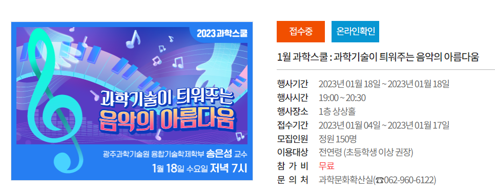 [국립광주과학관] 1월 과학스쿨 : "과학기술이 틔워주는 음악의 아름다움"