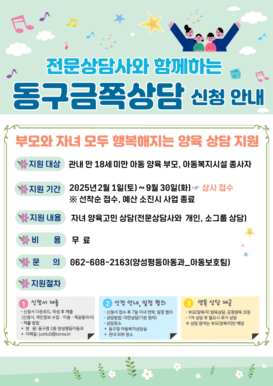 2025년 부모 맞춤형 긍정양육 코칭 동구 금쪽 상담 참여자 모집