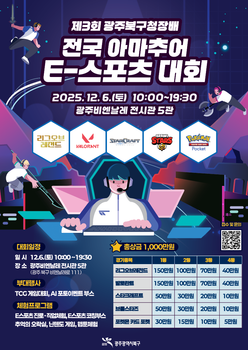 ★ 제3회 광주 북구청장배 전국아마추어 e스포츠 대회가 오는 12월 6일 토요일 광주비엔날레 전시관 5관에서 개최됩니다.★