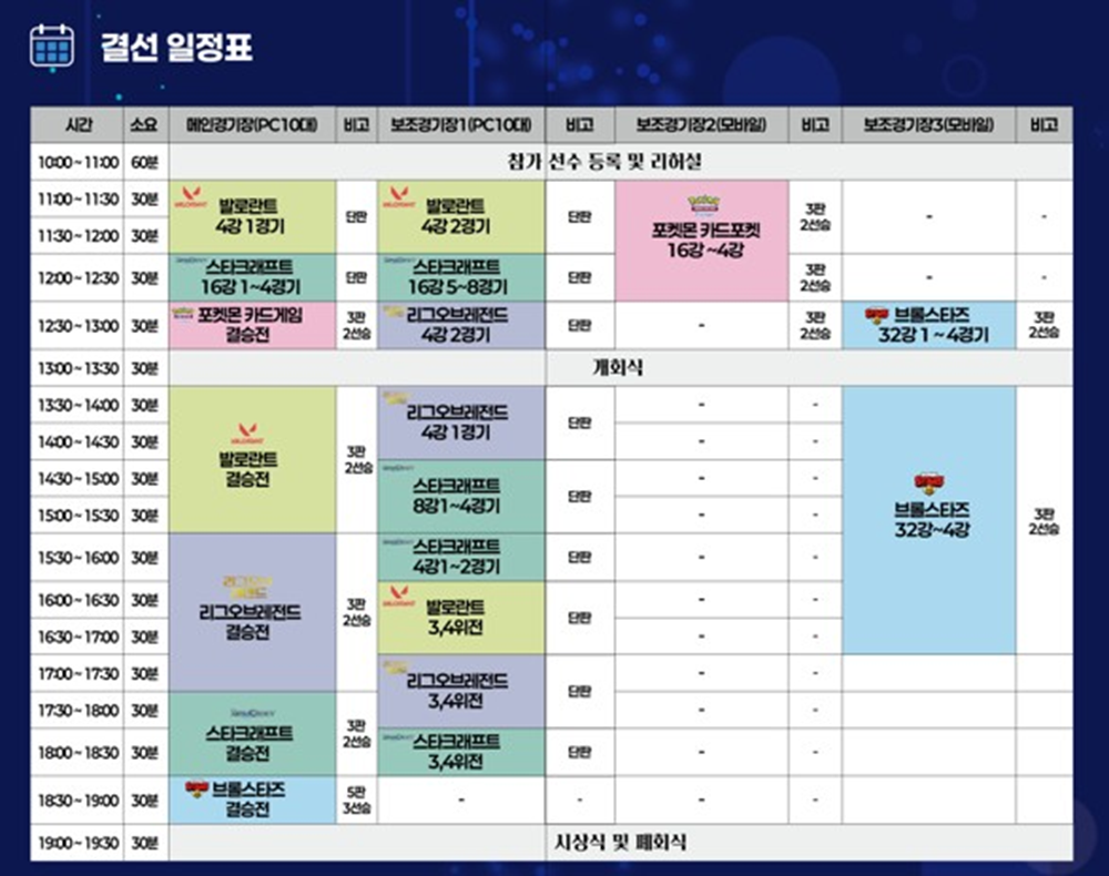 리그오브레전드 4팀, 발로란트 4팀, 스타크래프트 16분, 포켓몬카드포켓 16분이 결선에 진출했습니다!!!