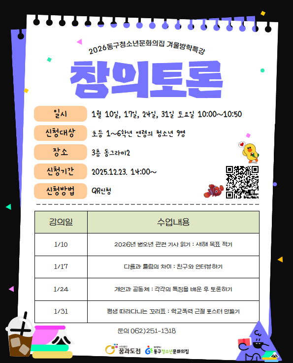 [동구청소년문화의집]2026 겨울방학특강 '창의토론' 참여자모집