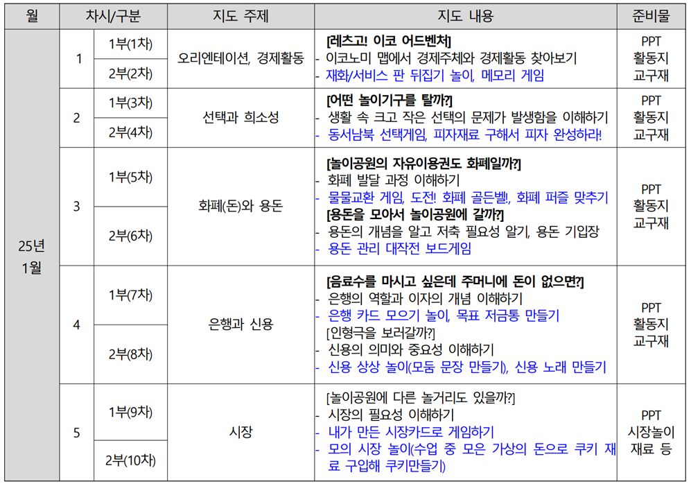 ❍ 운영내용 : 놀이공원에서 발생하는 경제활동을 통한 기초 경제교육